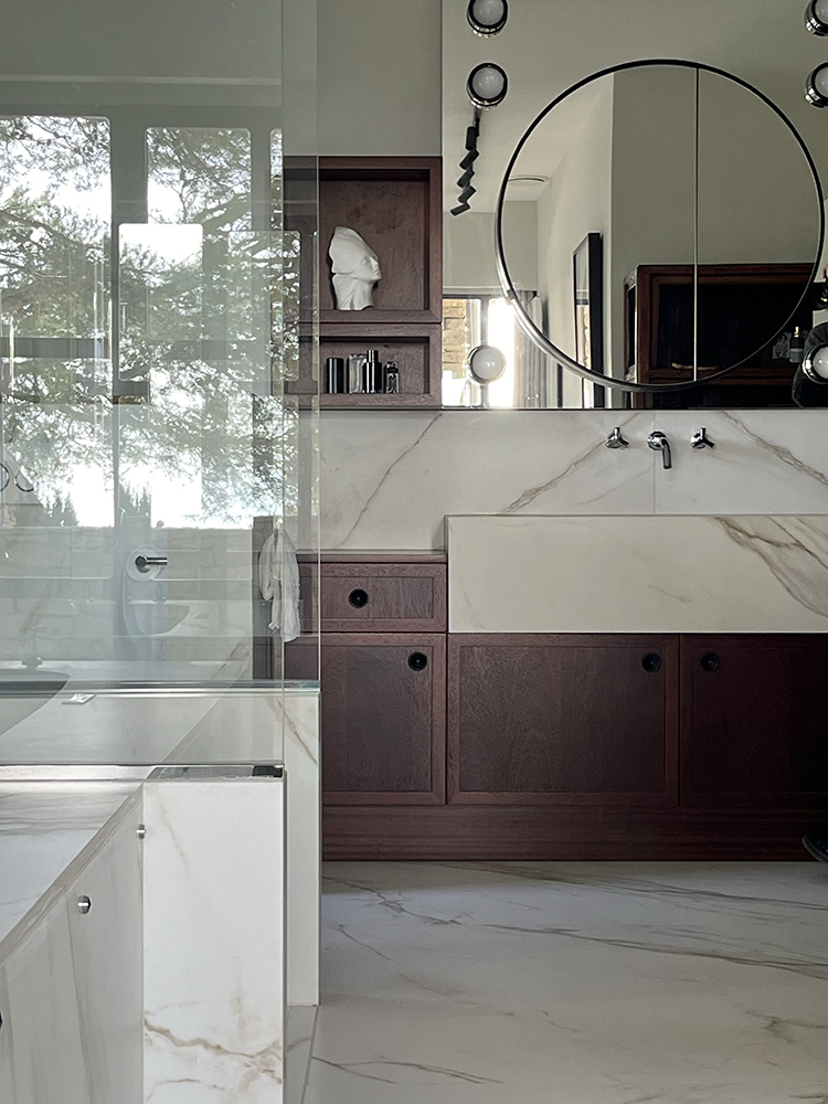 Maison Saumane de Vaucluse, salle de bains à travers le verre